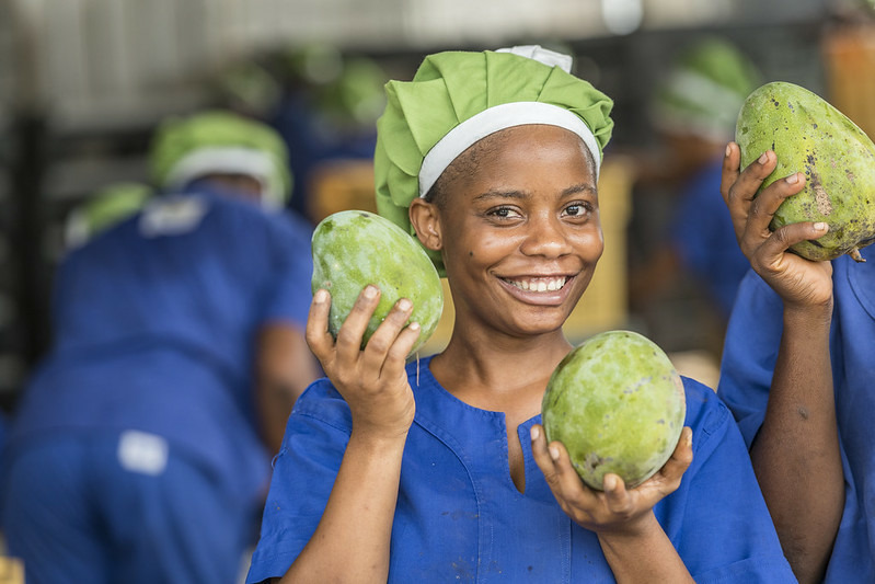 Copyright © | Weiterverarbeitung der gepflückten Mangos in der Fabrik bei unserem Partner Bomarts in Ghana.